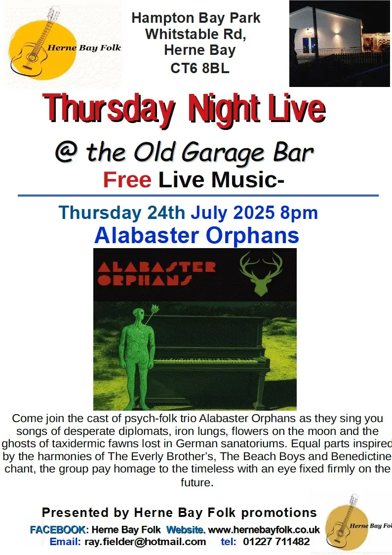 Come and join the cast pf psych-folk trio Alabaster Orphans as they sing of desperate diplomats, iron lungs, flowers on the moon and the ghosts of taxidermic fawns lost in German sanatoriums.